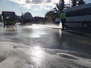 Ekipler, vatandaşların yoğun kullandığı ana cadde ve arterleri boydan boya deterjanlı suyla yıkayarak hem estetik bir görüntü sağlıyor hem de hijyen standartlarını yükseltiyor. Bu kapsamda, belediye araçlarına özel olarak deterjan eklenerek daha etkili bir temizlik yapılması sağlanıyor.